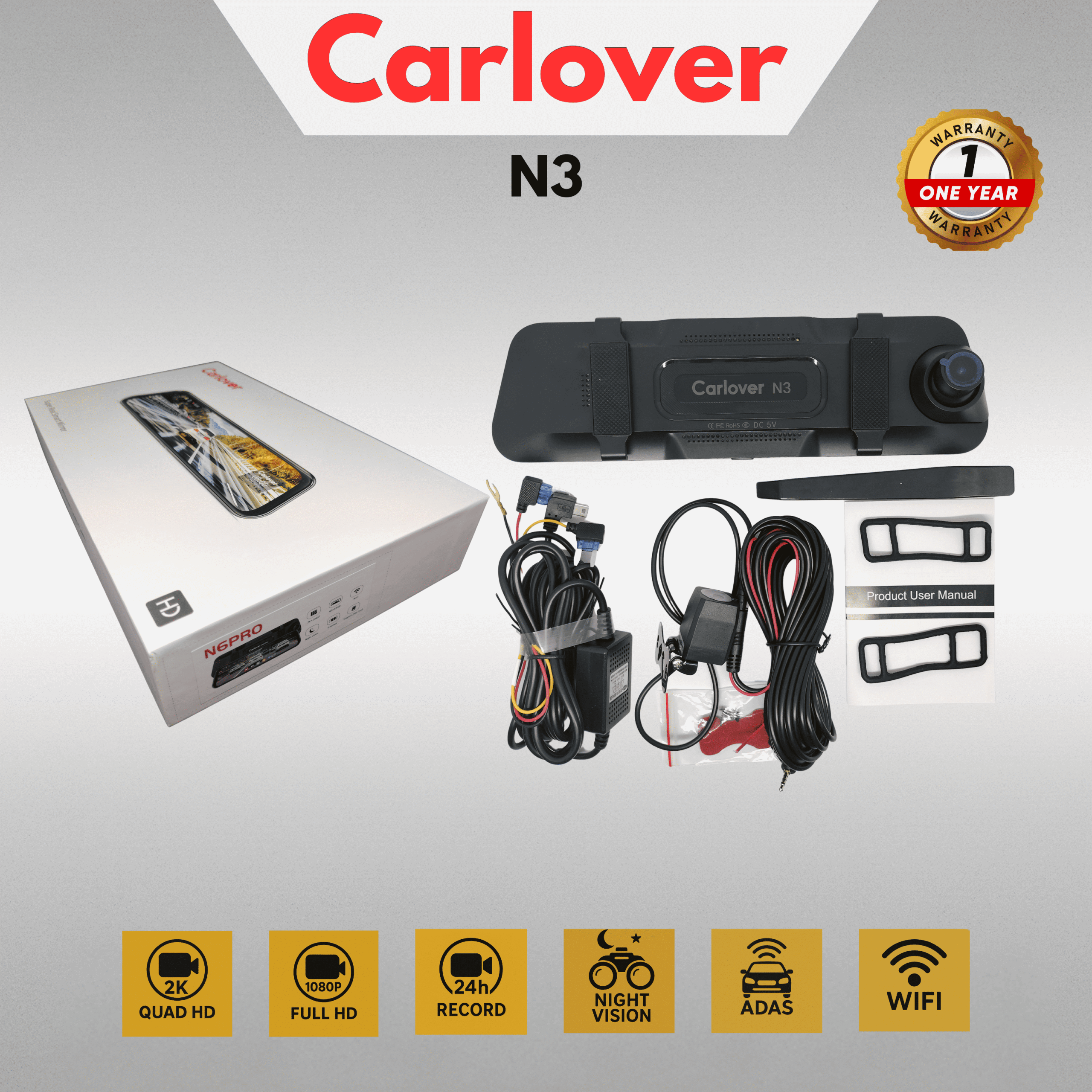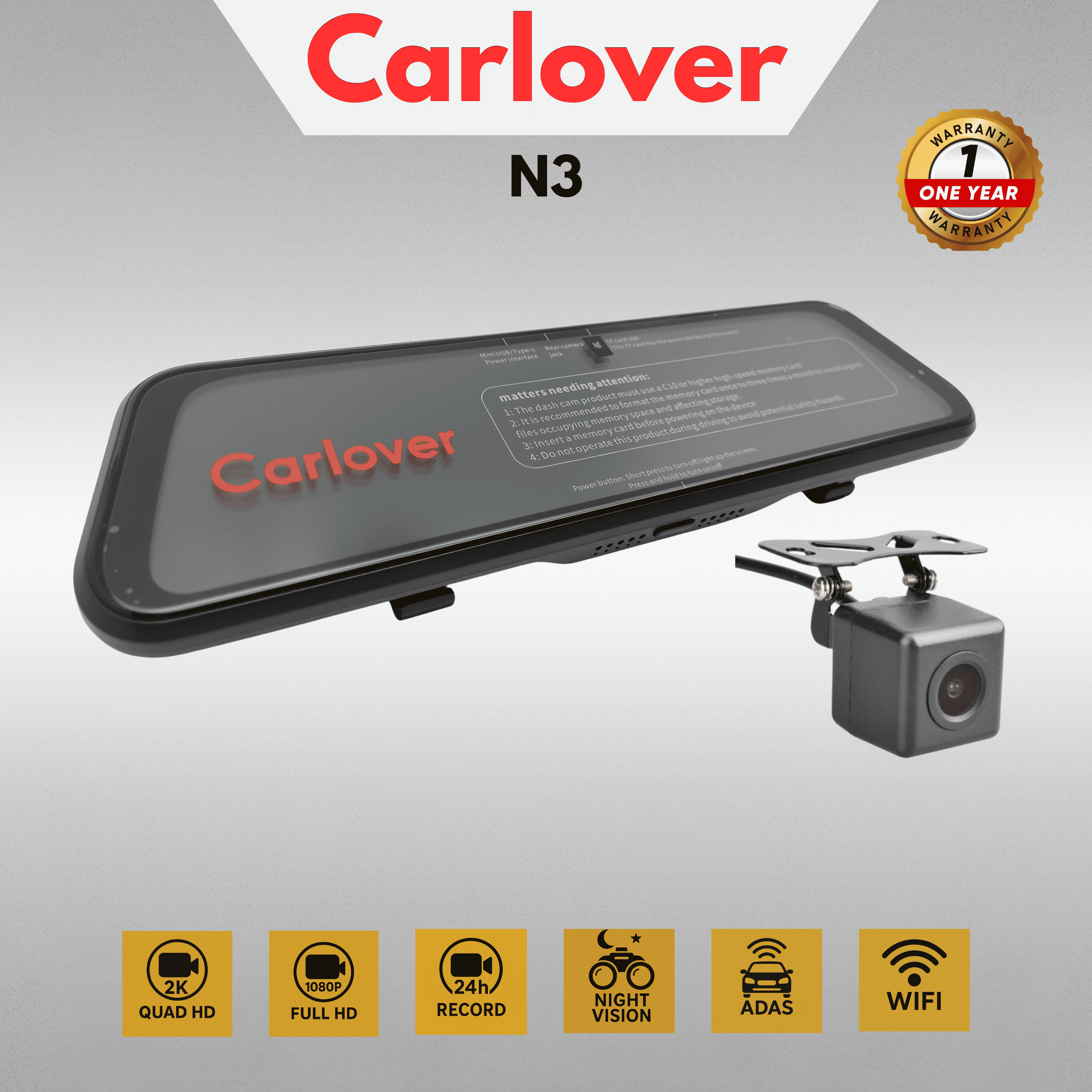 - Camera resolution 2 Lans,Front 1080P+Rear 1080P